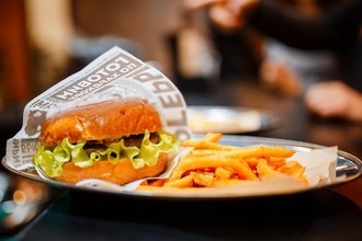 Только здесь бургеры отличаются особым свирепым характером. Он огромен, обладает ярко выраженным вкусом и особенной прожаркой. Здесь позаботились даже о вегетарианцах. Специально для них в меню есть вегетарианский бургер с фалафелем. Если Вы не любители бургеров, можете заказать аппетитные салаты, сочные хот-доги с мужским характером. Богатое разнообразие газированных напитков и терпкий кофе.